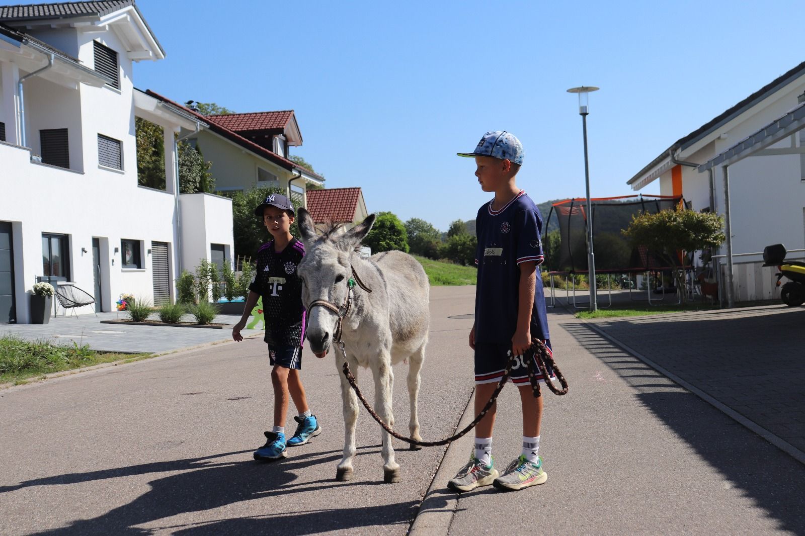 Ich bin 2024 auf den Hof gezogen und bin mittlerweile der beste Freund von Vally. Ich mische die Eselherde kräftig auf. Draußen bin ich ein lieber Kerl.
